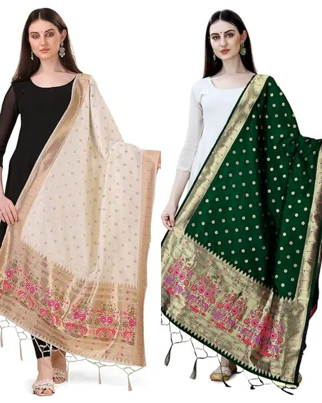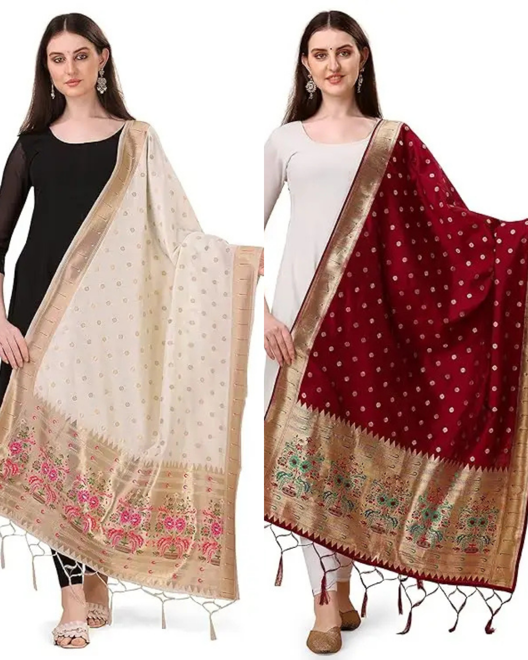 Discover the exquisite craftsmanship of our handwoven Banarasi dupattas, perfect for adding a touch of royal sophistication to any ethnic ensemble. Explore our premium collection of unstitched fabrics—sourced in pure silk, cotton, and more—to create custom outfits tailored just for you. Whether you’re searching for traditional charm or modern versatility, Trendify Looks brings you the finest in Indian textiles and fashion essentials. Shop with confidence for quality, authenticity, and trendsetting designs, all designed to help you express your unique personality and elevate your wardrobe to new heights.