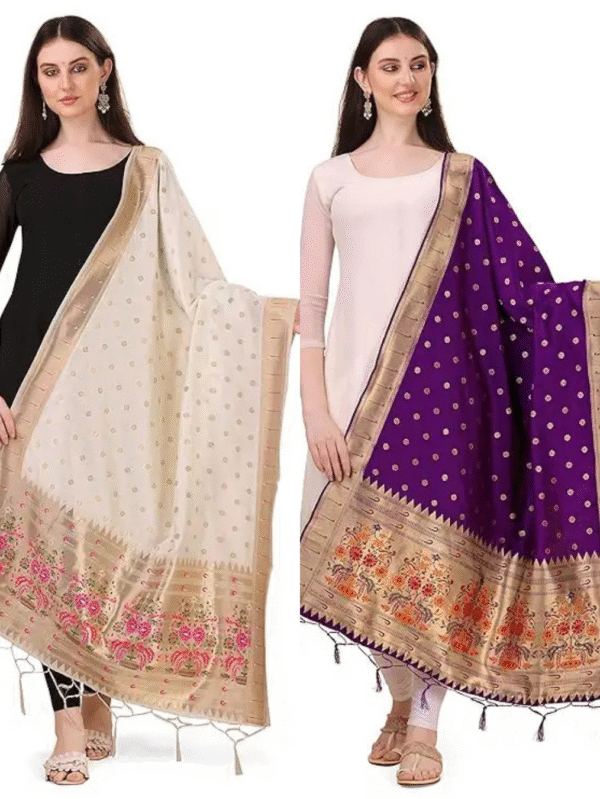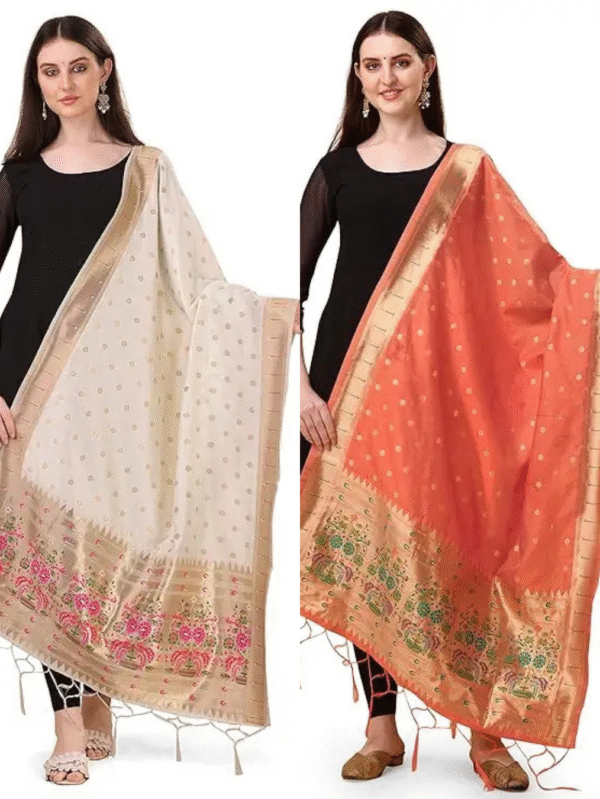 Fancy White-Peach Banarasi Silk Dupatta Combo