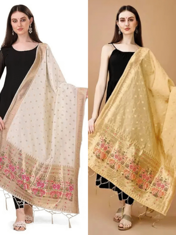 Fancy White-Gold Banarasi Silk Dupatta Combo