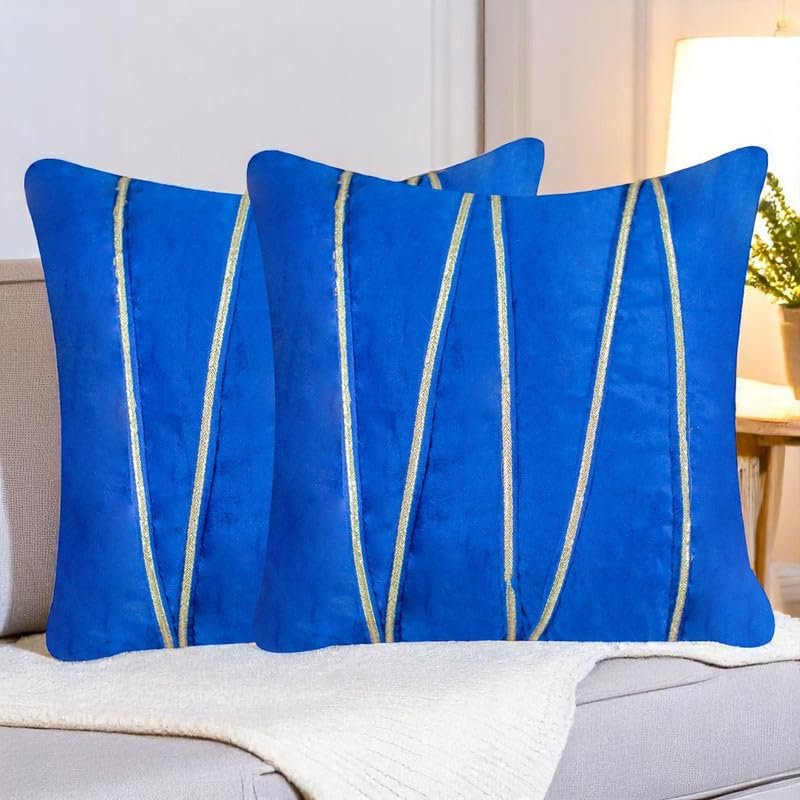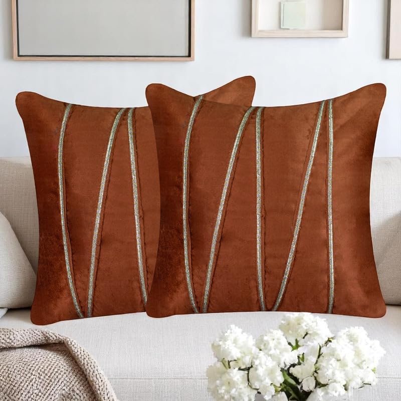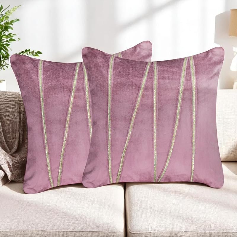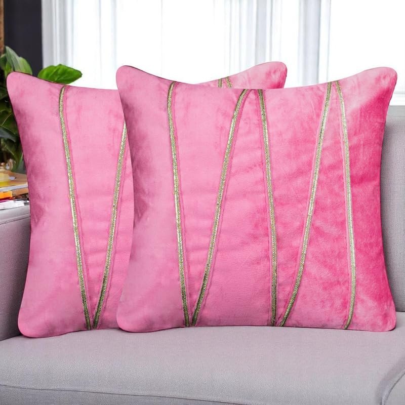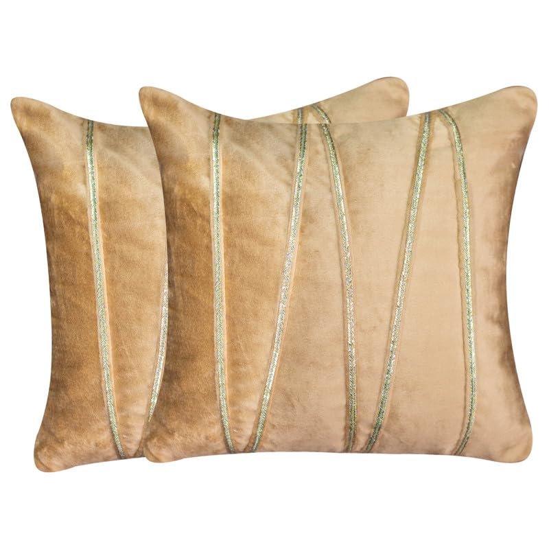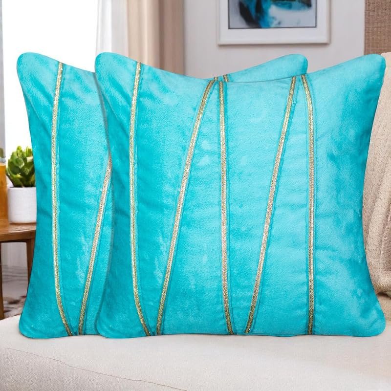 Pista Green Velvet Decorative Lace Striped Cushion Covers 16×16 Inch – Festive & Luxurious Home Décor Sofa Pillow Cover (Pack of 2), for Sofa, Living Room, Office, Home Decor (Insert Not Included)