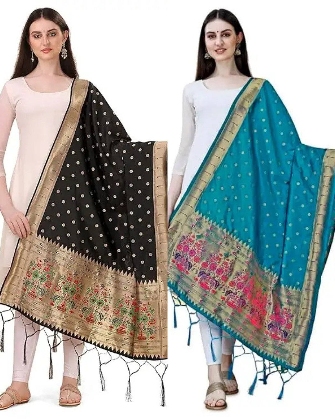 Elegant Black-Firozi Combo Banarasi Paithani Silk Dupatta / Chunni for Women
