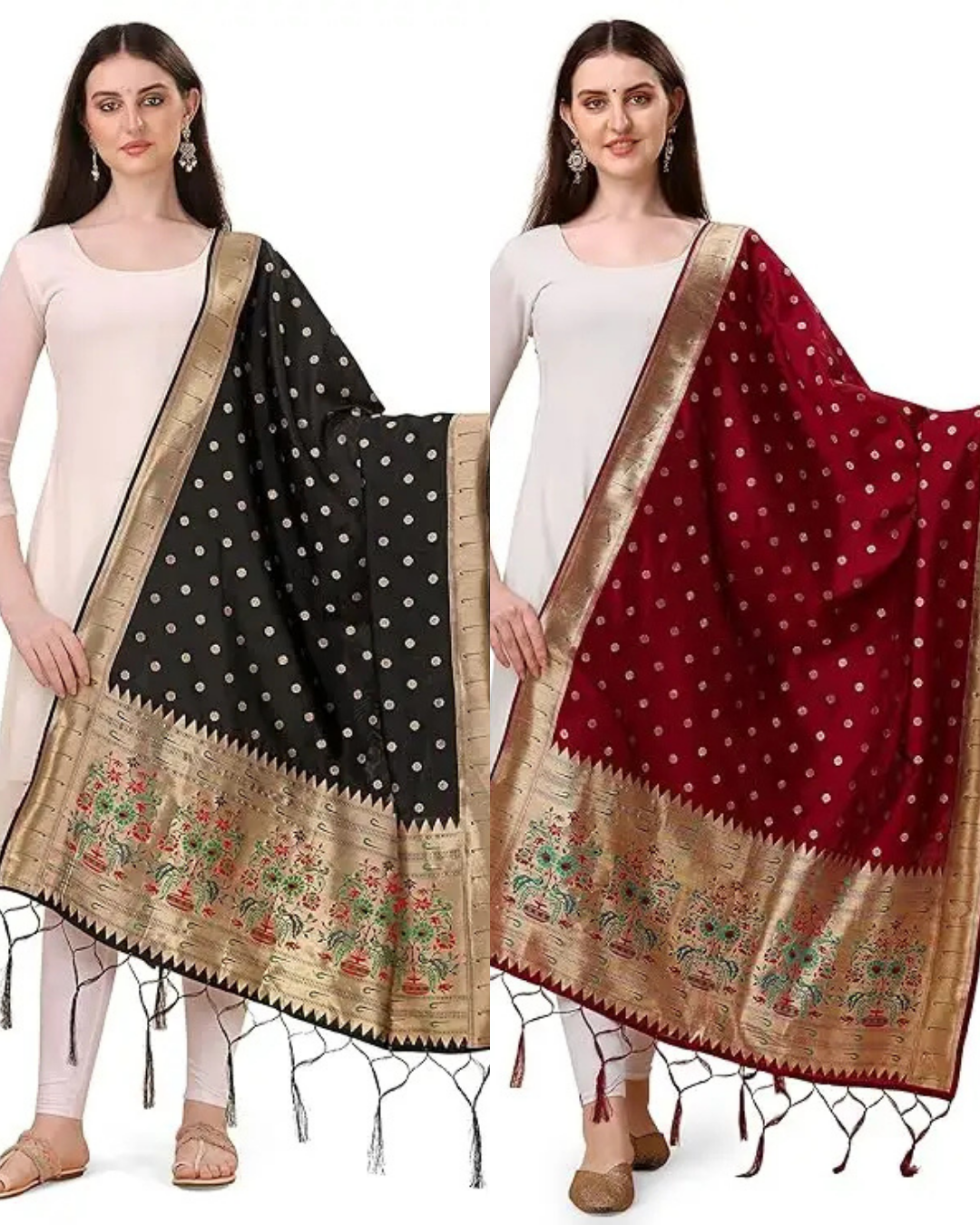 Elegant Black-Maroon Combo Banarasi Paithani Silk Dupatta / Chunni for Women