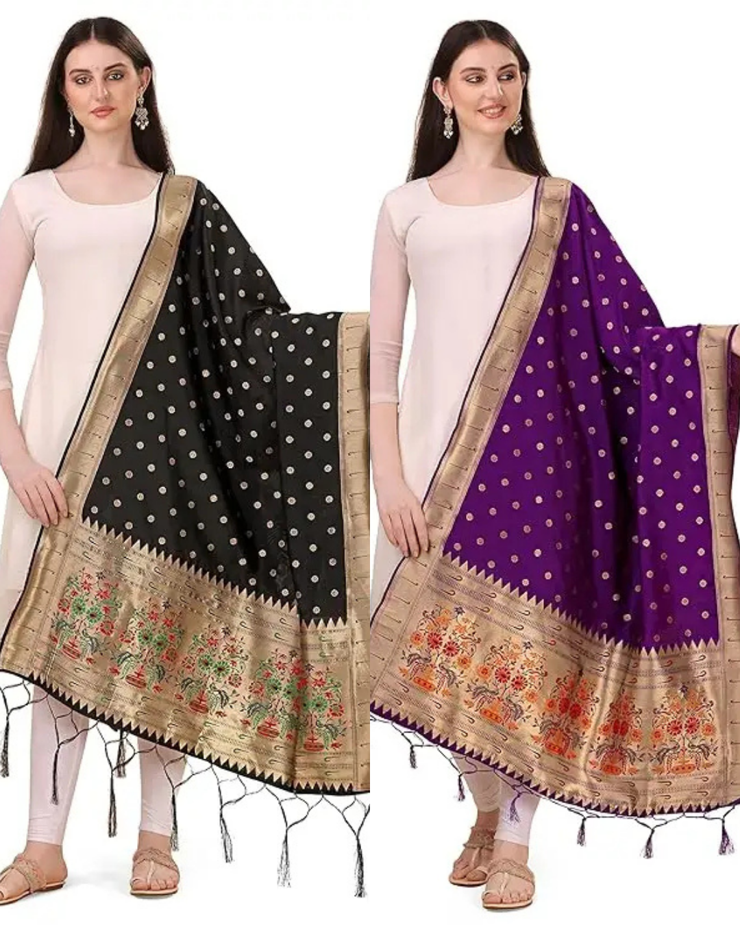 Elegant Black-Purple Combo Banarasi Paithani Silk Dupatta / Chunni for Women