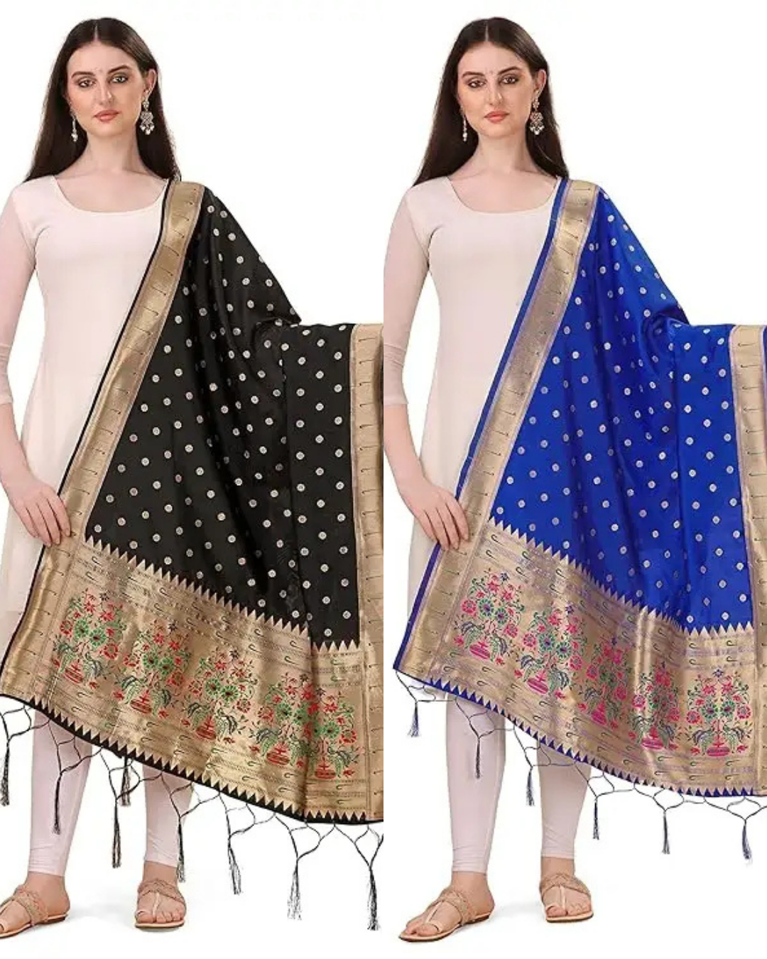 Elegant Black-Royal Blue Combo Banarasi Paithani Silk Dupatta / Chunni for Women
