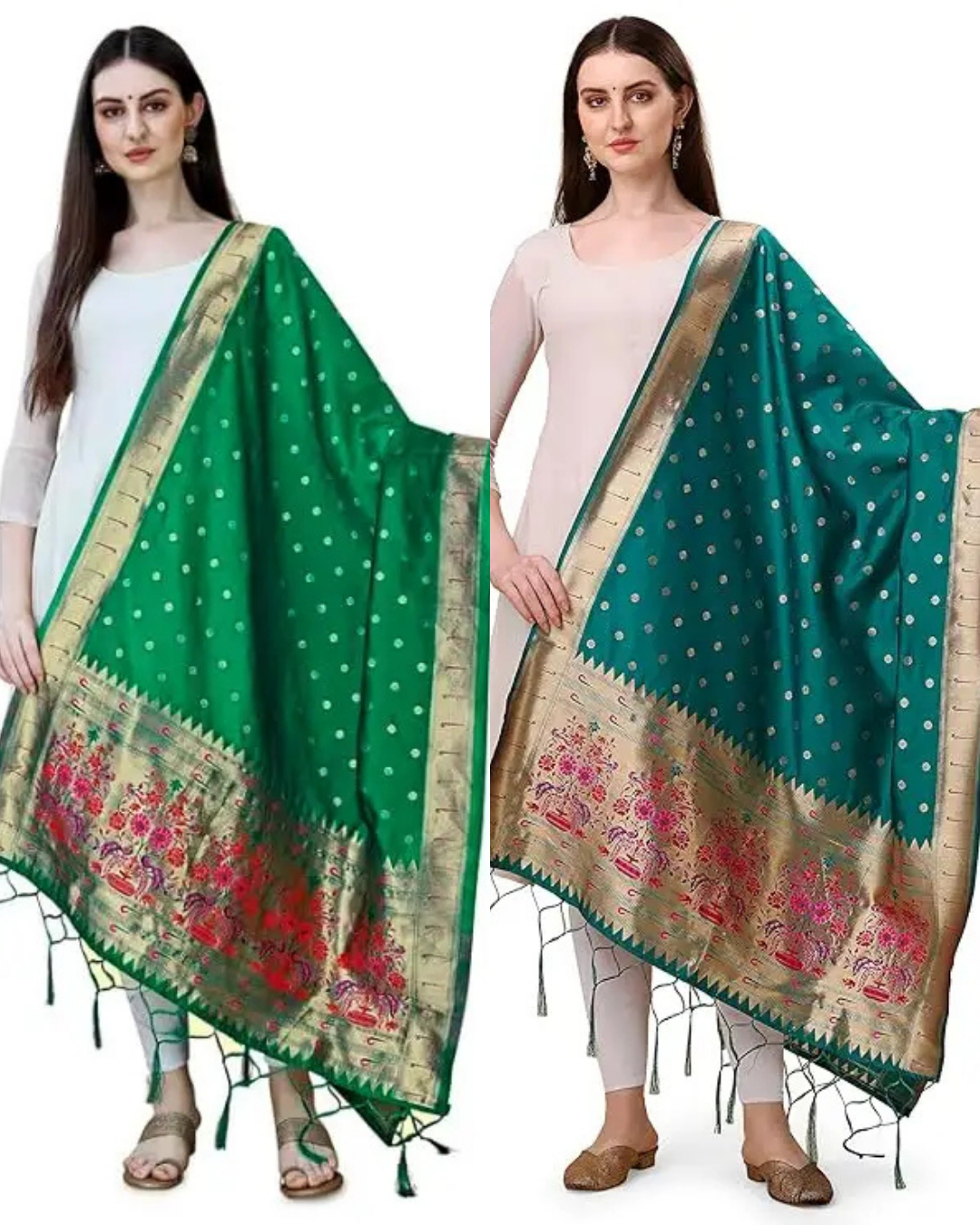 Elegant Parrot Green-Rama Combo Banarasi Paithani Silk Dupatta / Chunni for Women