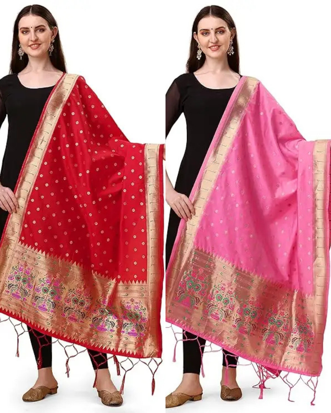 Traditional Red & Baby Pink Banarasi Silk Dupatta Combo