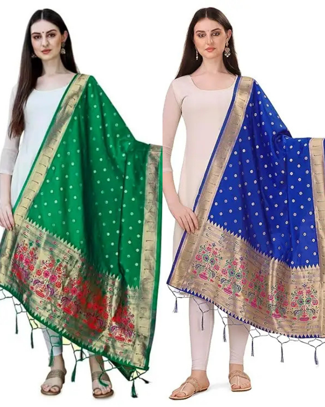 Elegant Parrot Green-Royal Blue Combo Banarasi Paithani Silk Dupatta / Chunni for Women