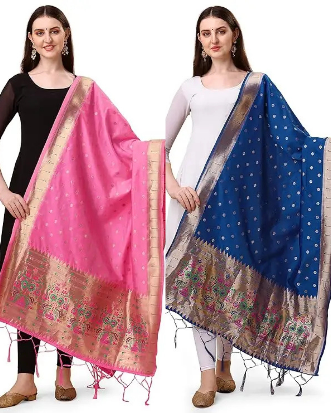 Fancy Baby Pink and Navy Blue Banarasi Silk Dupatta Combo