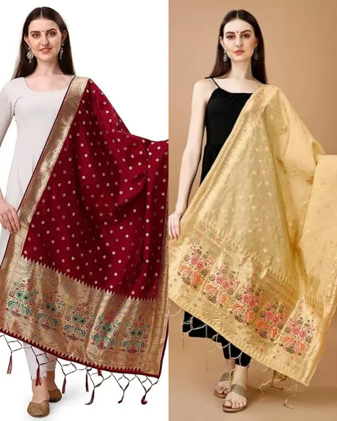 Fancy Maroon-Gold Banarasi Silk Dupatta Combo / Chunni for Women