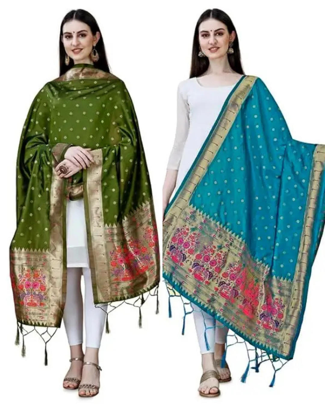 Fancy Mehendi Green and Firozi Banarasi Silk Dupatta Combo