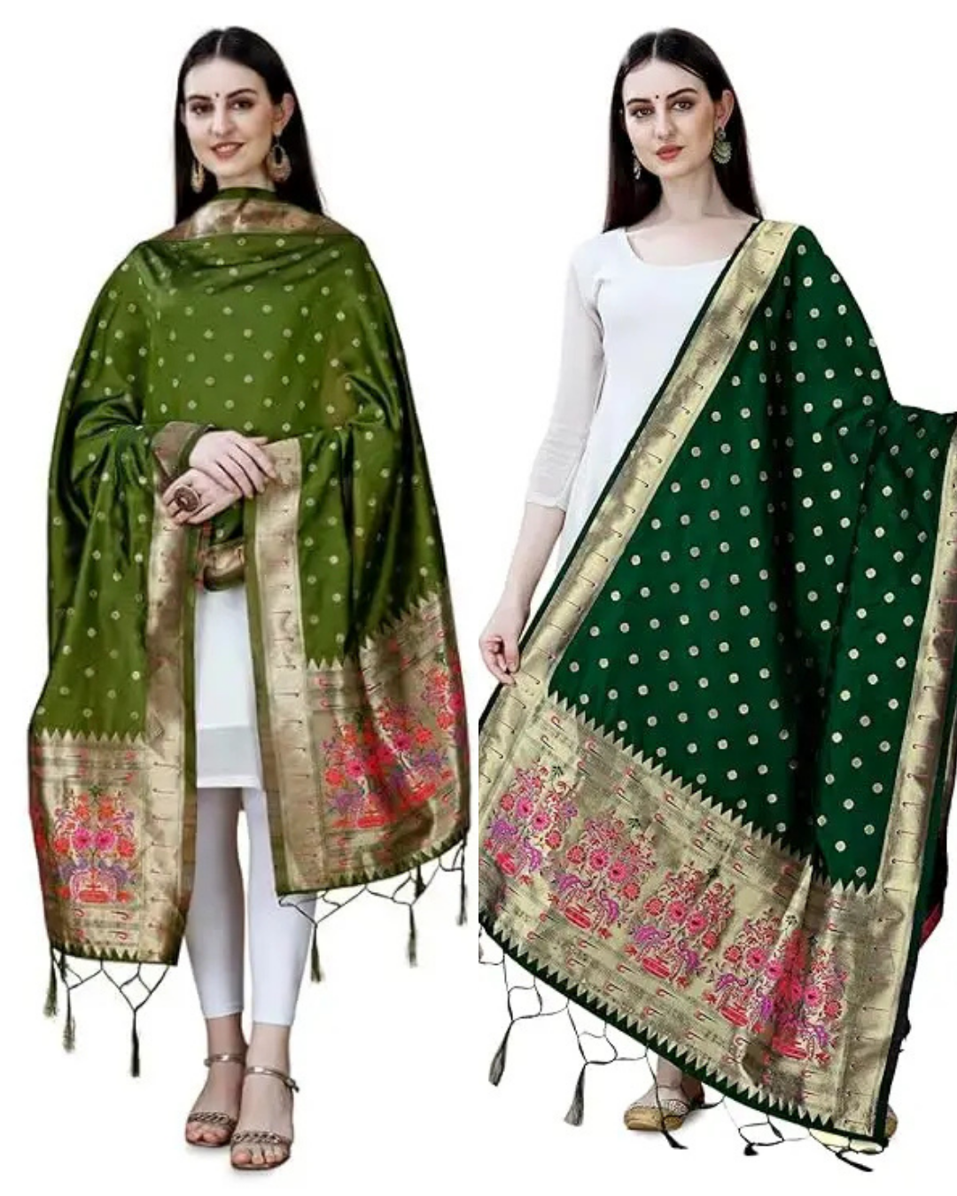 Fancy Mehendi Green-Dark Green Banarasi Silk Dupatta Combo / Chunni for Women
