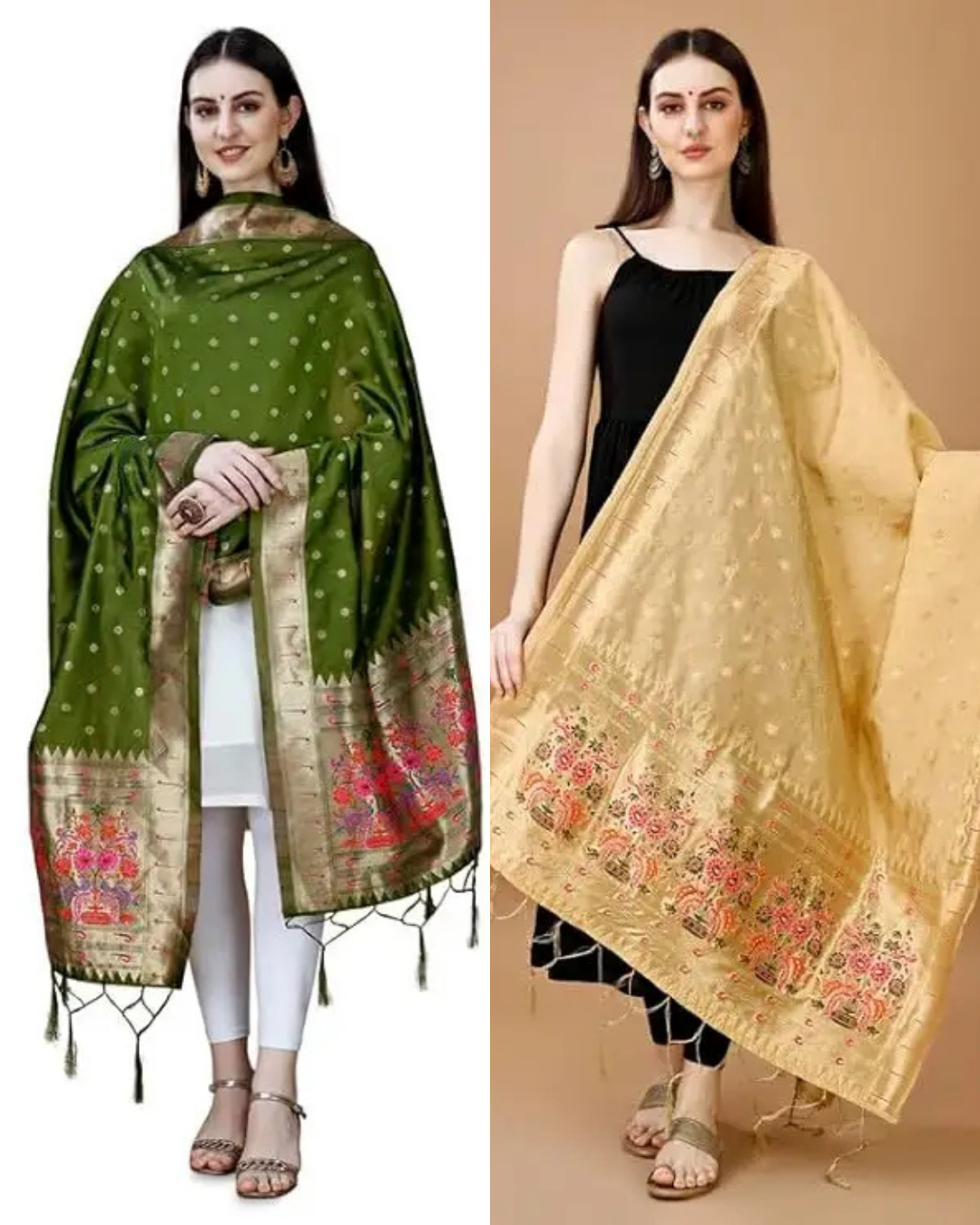 Fancy Mehendi Green-Gold Banarasi Silk Dupatta Combo / Chunni for Women