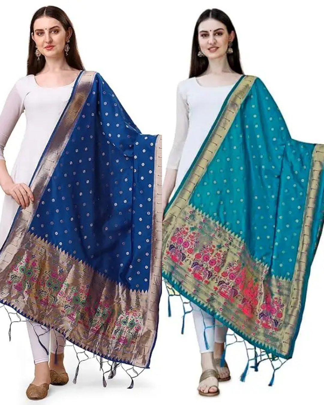 Fancy Navy Blue and Firozi Banarasi Silk Dupatta Combo / Chunni for Women