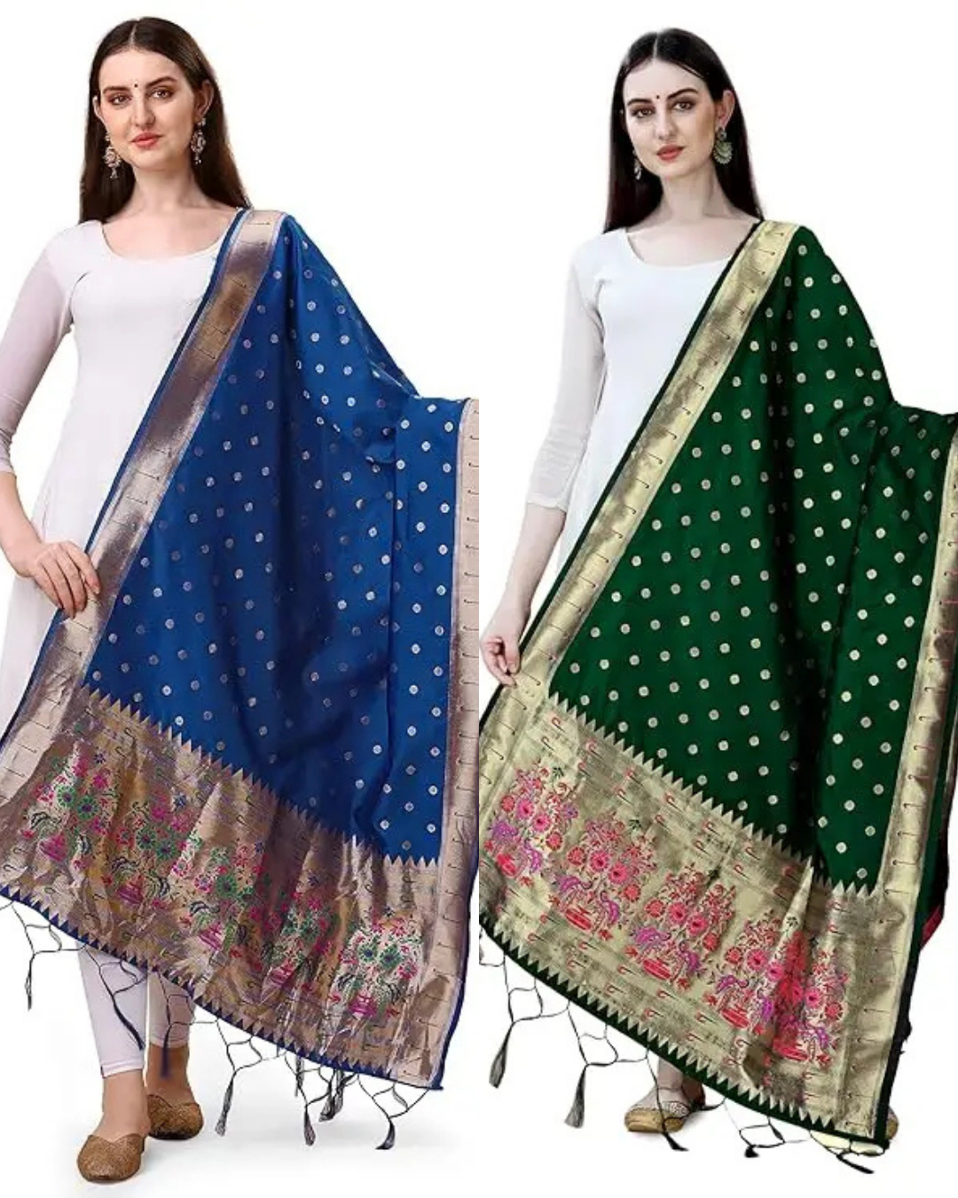 Fancy Navy Blue-Dark Green Banarasi Silk Dupatta Combo / Chunni for Women