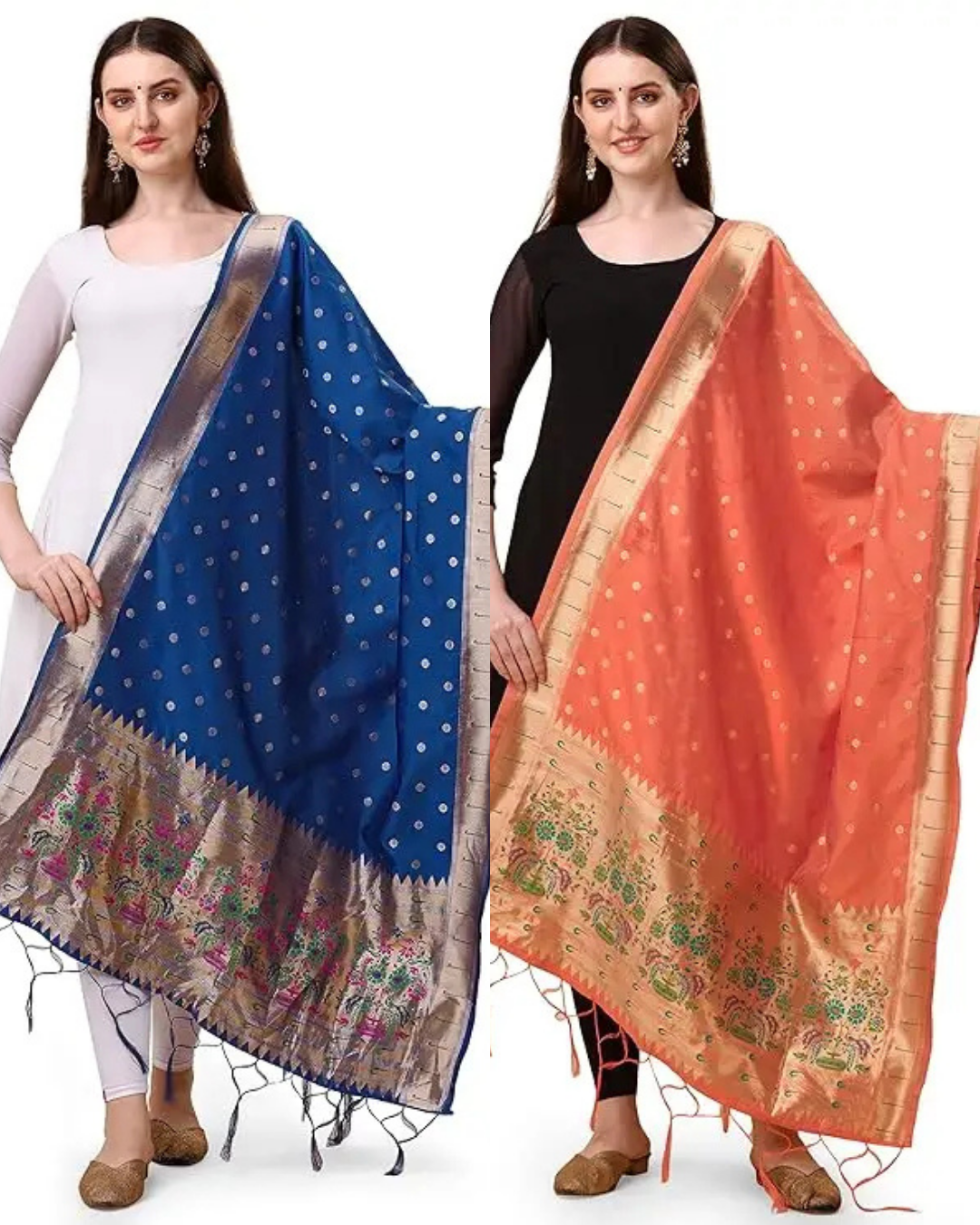 Fancy Navy Blue-Peach Banarasi Silk Dupatta Combo / Chunni for Women