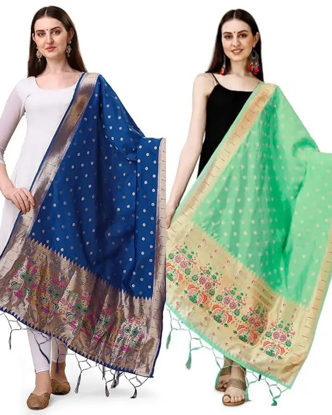 Fancy Navy Blue-Sea Green Banarasi Silk Dupatta Combo / Chunni for Women