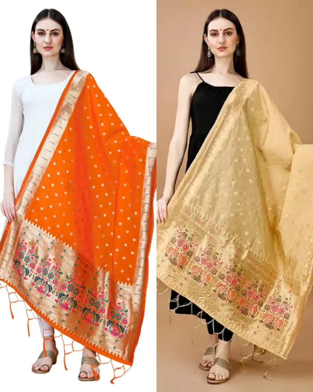 Fancy Orange-Gold Banarasi Silk Dupatta Combo / Chunni for Women