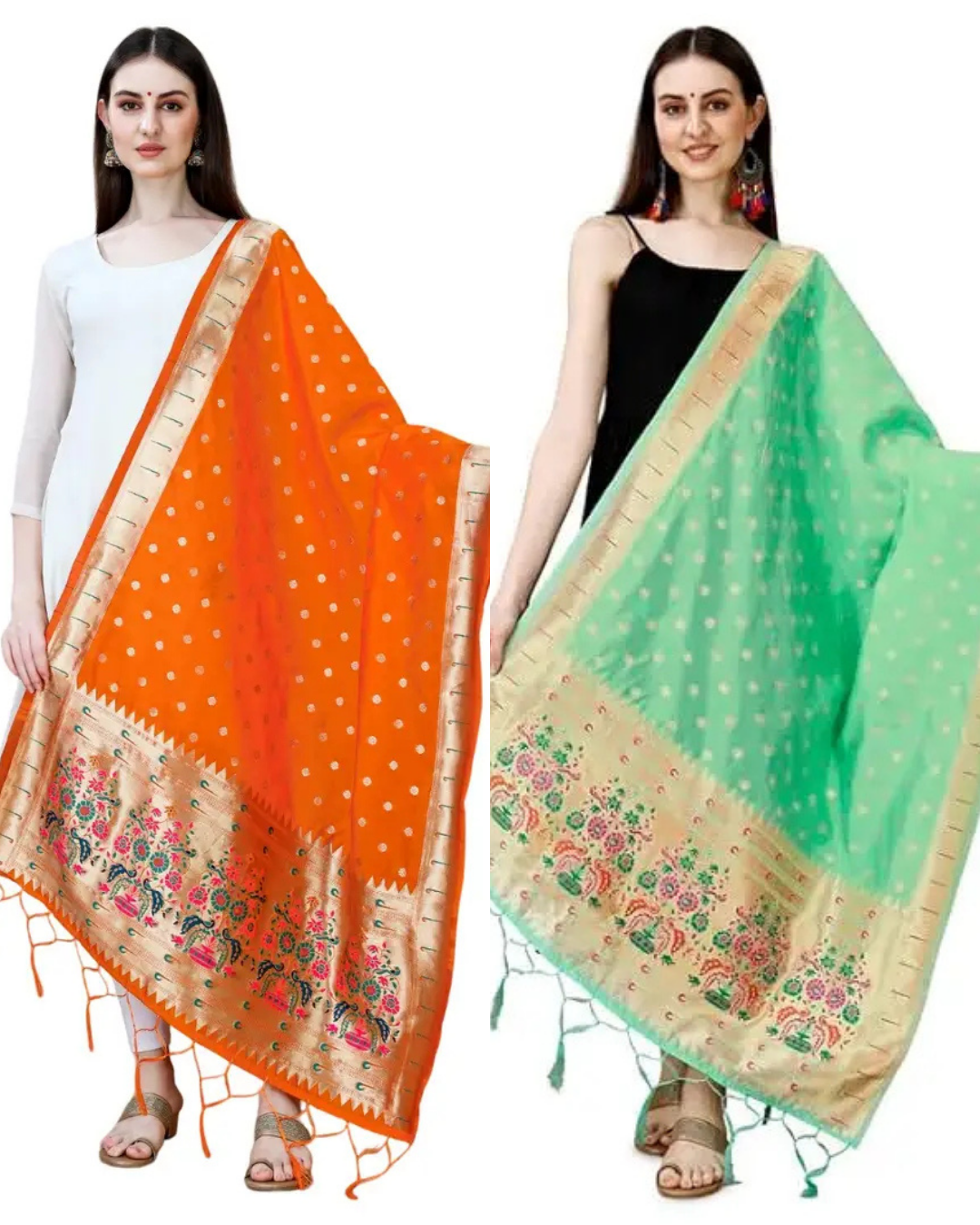 Fancy Orange-Sea Green Banarasi Silk Dupatta Combo / Chunni for Women