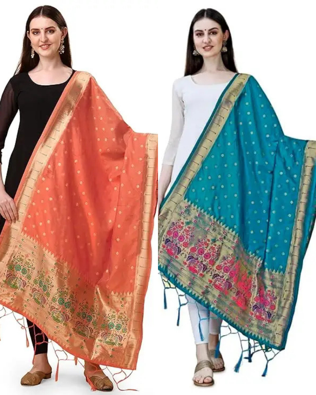 Fancy Peach and Firozi Banarasi Silk Dupatta Combo / Chunni for Women