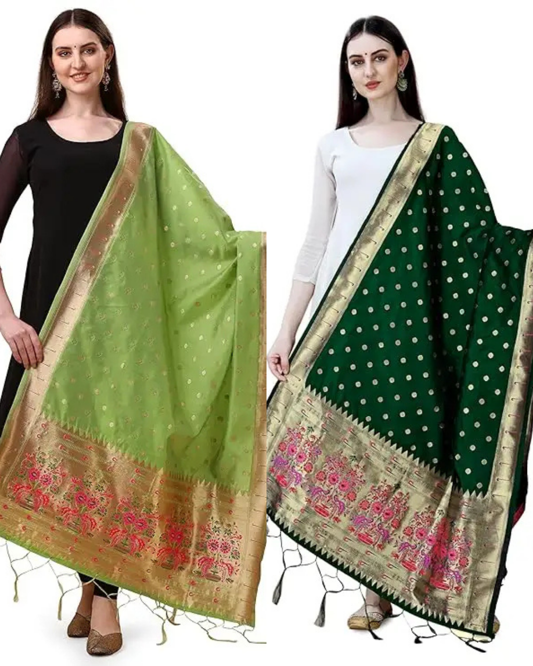 Fancy Pista Green-Dark Green Banarasi Silk Dupatta Combo / Chunni for Women