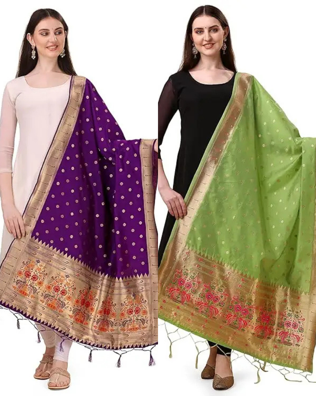 Fancy Purple-Pista Green Banarasi Silk Dupatta Combo / Chunni for Women