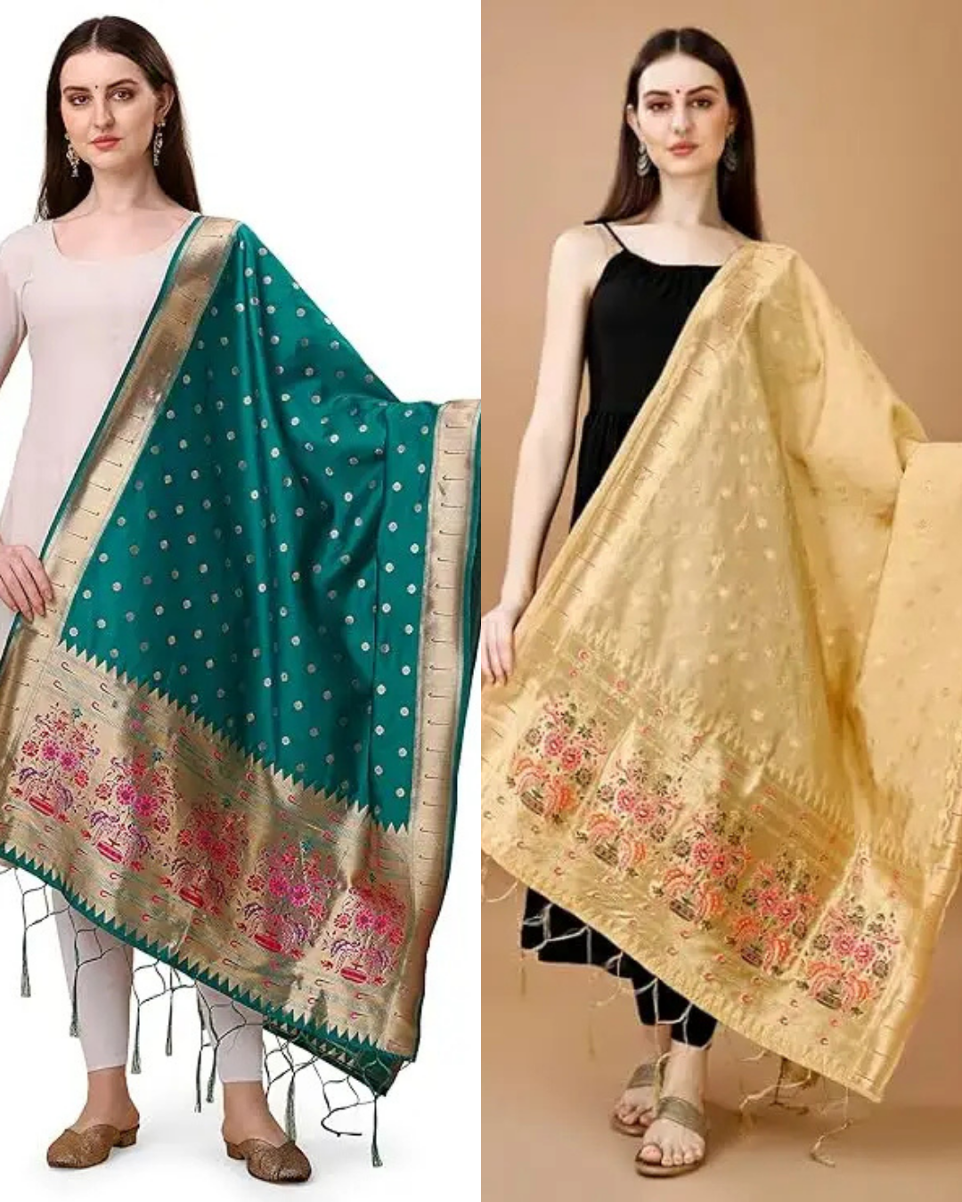 Fancy Rama-Gold Banarasi Silk Dupatta Combo / Chunni for Women