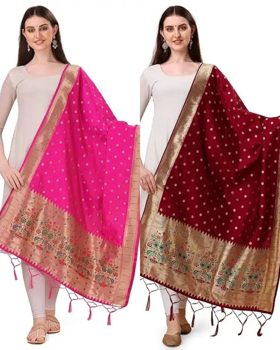 Fancy Rani Pink-Maroon Banarasi Silk Dupatta Combo
