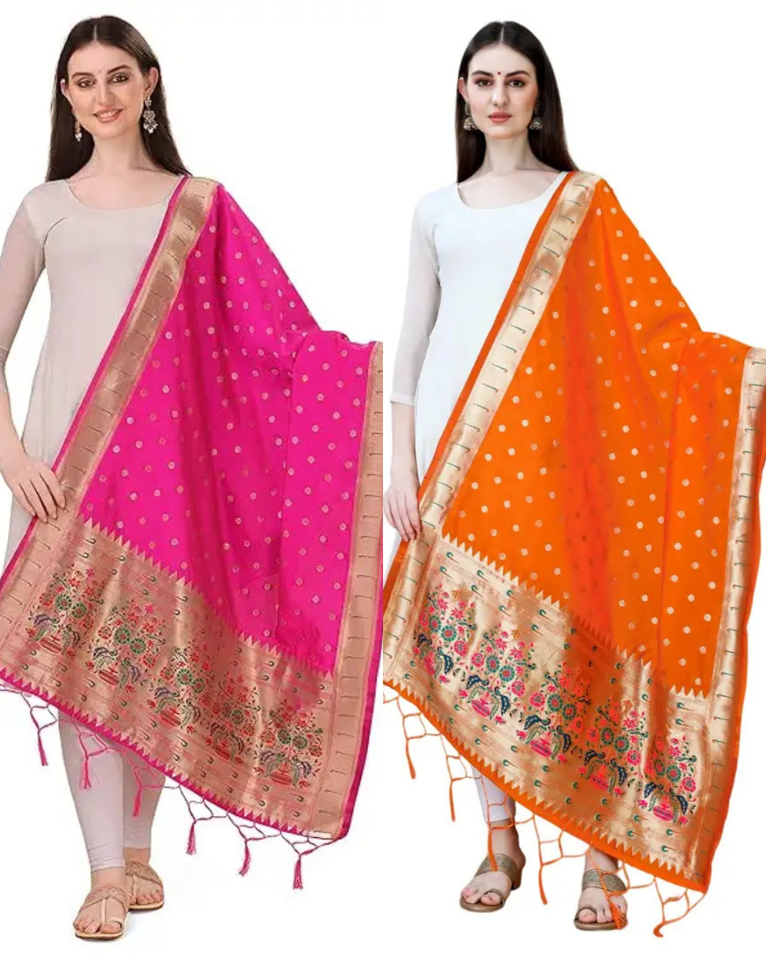 Fancy Rani Pink-Orange Banarasi Silk Dupatta Combo