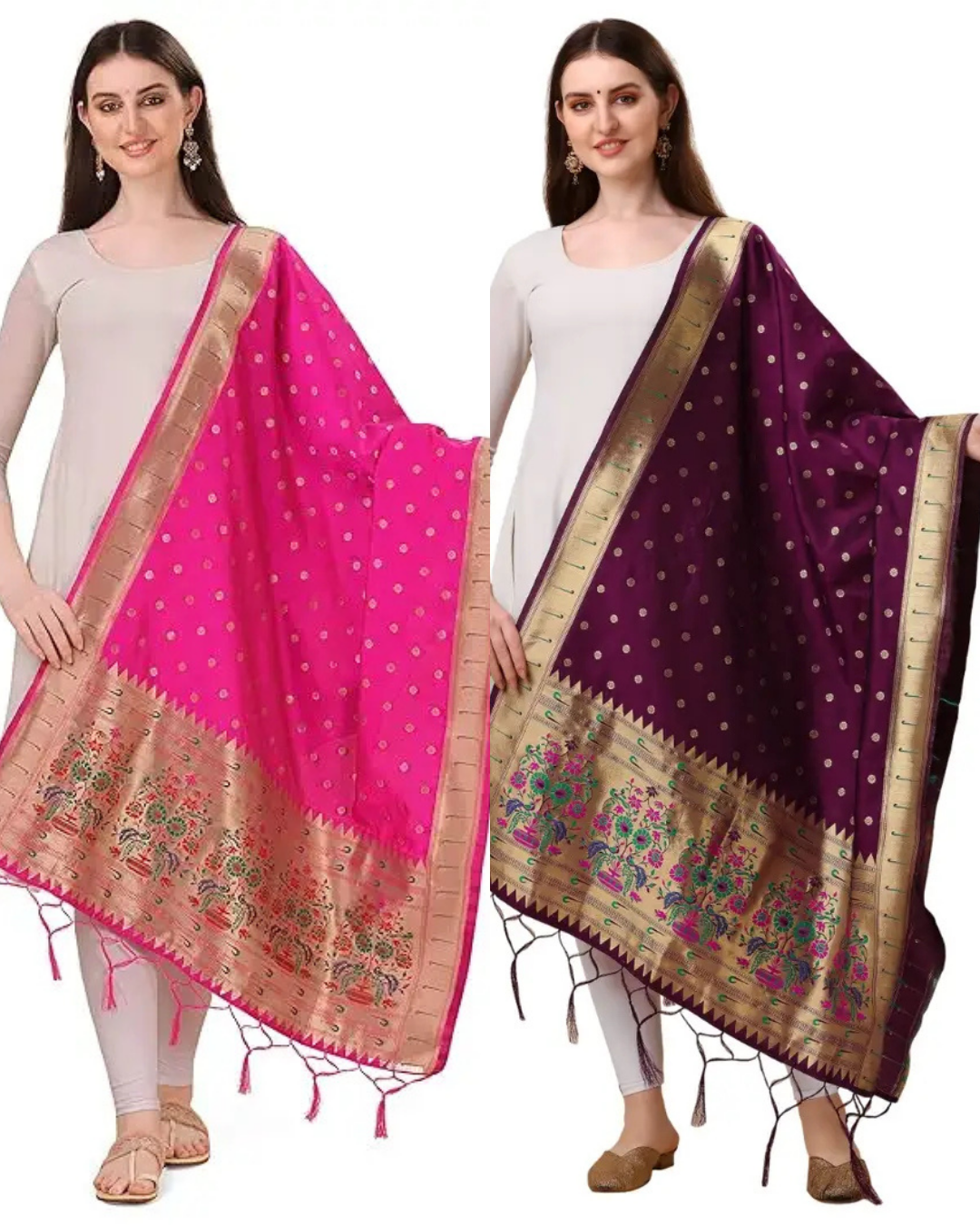 Fancy Rani Pink-Wine Banarasi Silk Dupatta Combo / Chunni for Women