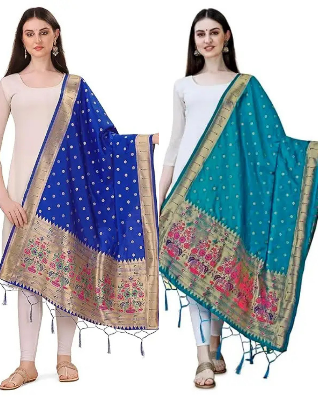 Fancy Royal Blue and Firozi Banarasi Silk Dupatta Combo / Chunni for Women