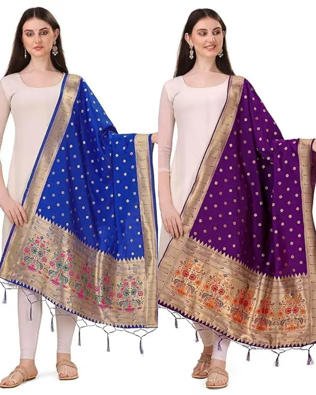 Fancy Royal Blue-Purple Banarasi Silk Dupatta Combo / Chunni for Women
