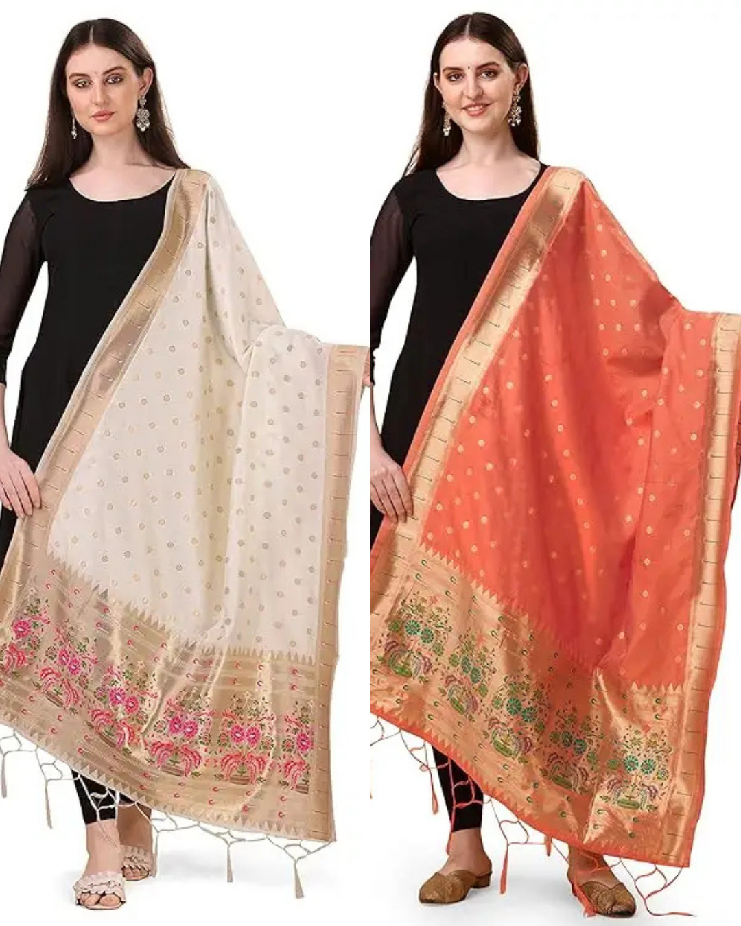 Fancy White-Peach Banarasi Silk Dupatta Combo / Chunni for Women