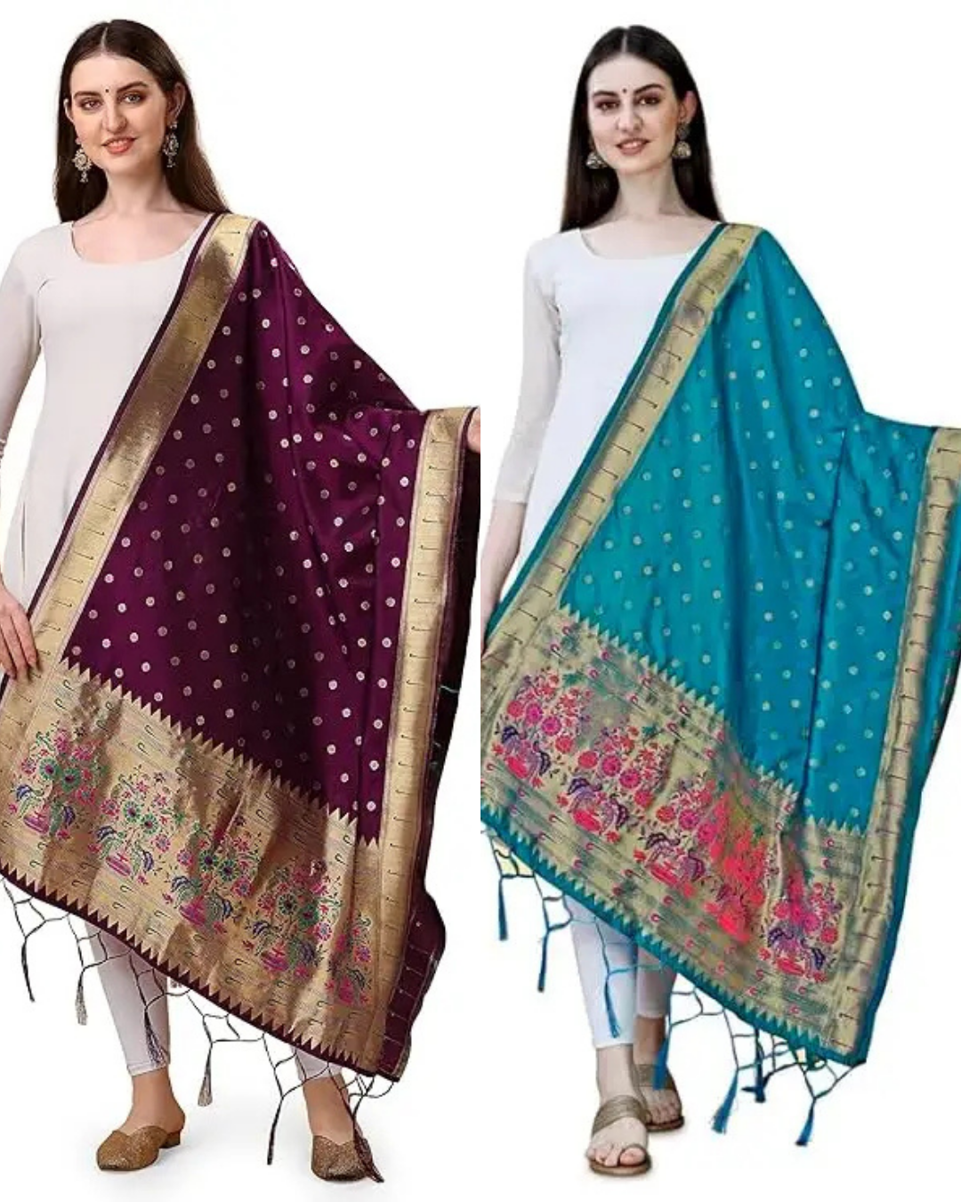 Fancy Wine and Firozi Banarasi Silk Dupatta Combo / Chunni for Women