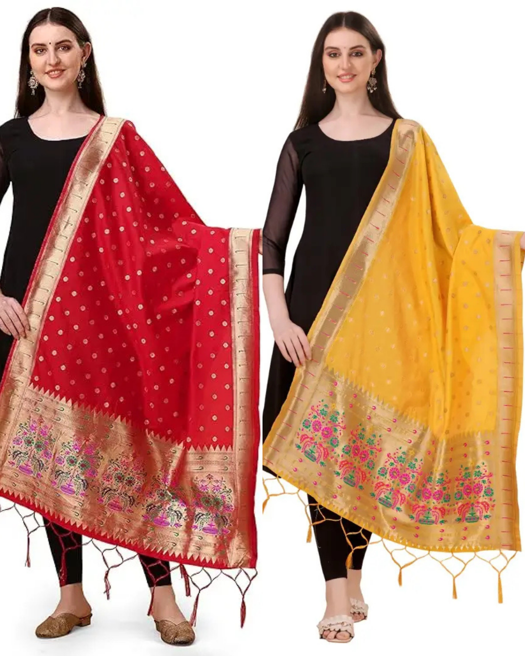 Traditional Red & Yellow Banarasi Silk Combo Dupatta / Chunni for Women