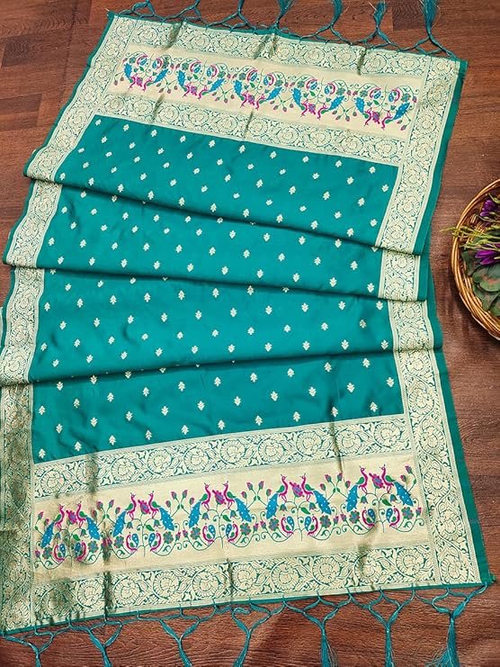 Elevate your ethnic wardrobe with the Unstitched Stylish Rama 3 Piece Banarasi Silk Paithani Salwar Suit for Women—a timeless blend of tradition and contemporary elegance.