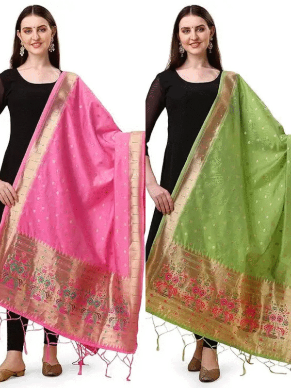 Fancy Baby Pink-Mehendi Green Banarasi Silk Dupatta Combo (Copy)