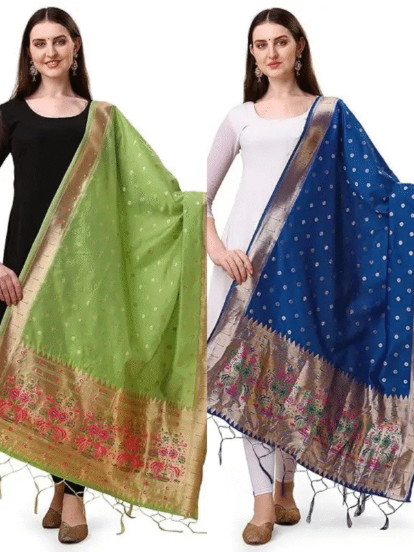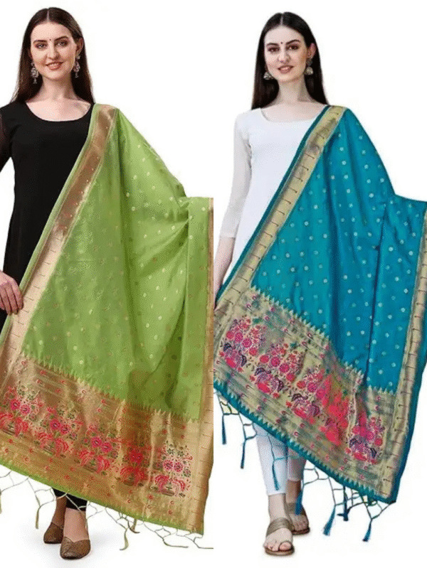 Fancy Pista Green and Firozi Banarasi Silk Dupatta Combo