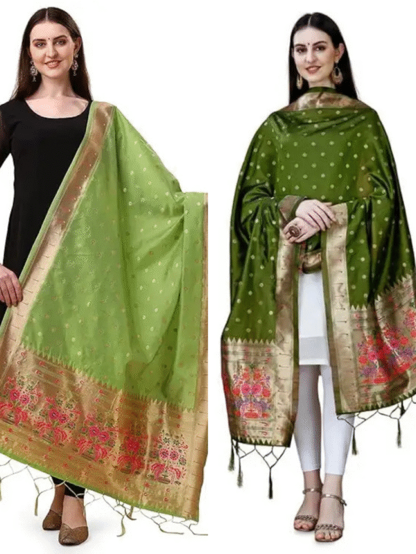 Parrot Green Fancy Paithani Banarasi Silk Dupatta for Women