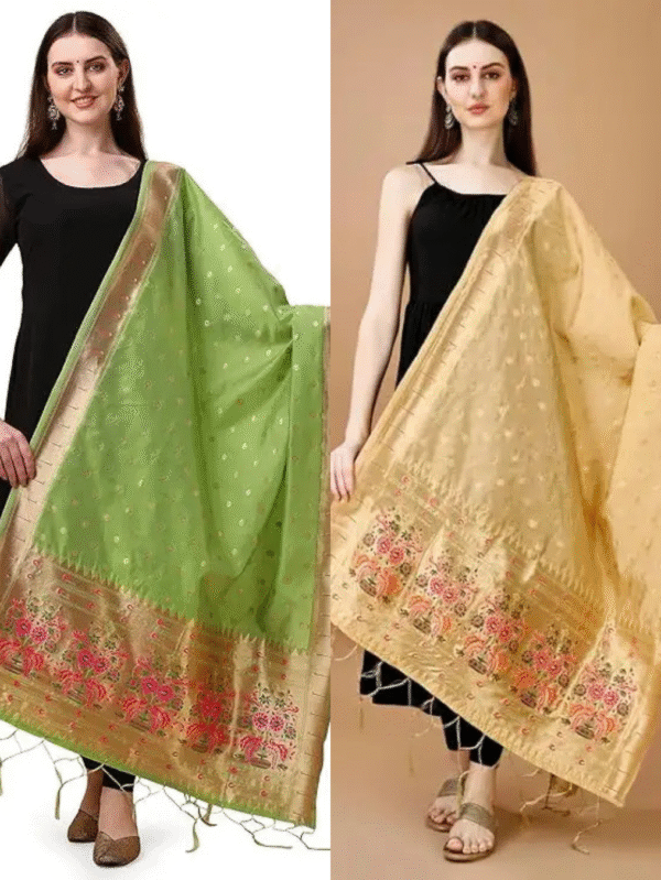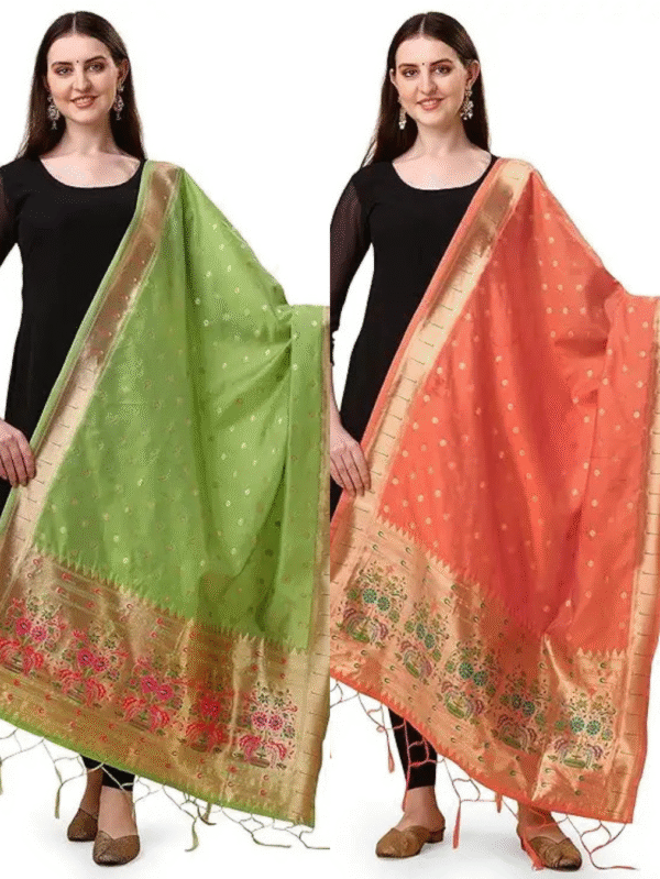 Fancy Pista Green-Peach Banarasi Silk Dupatta Combo
