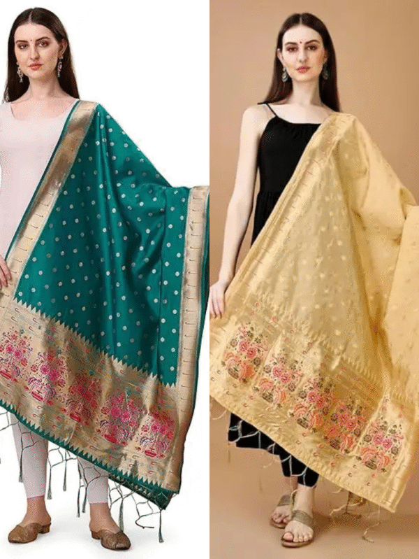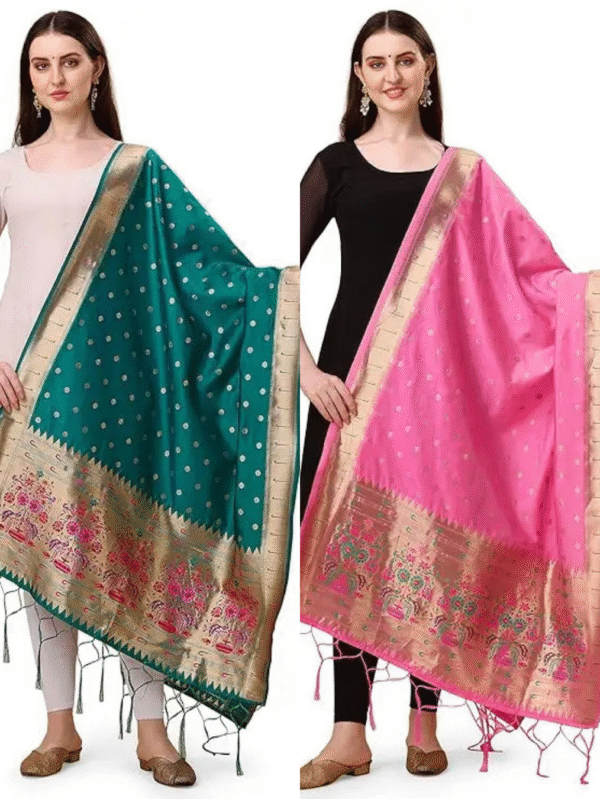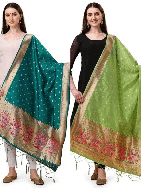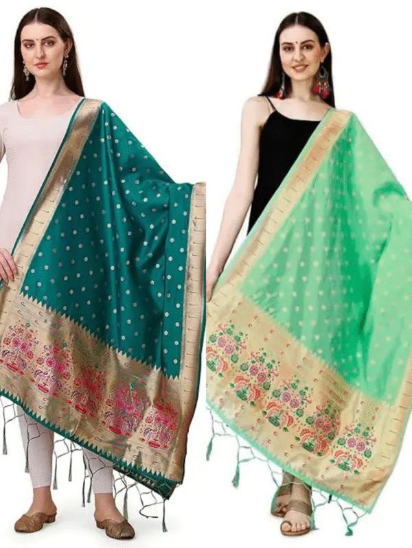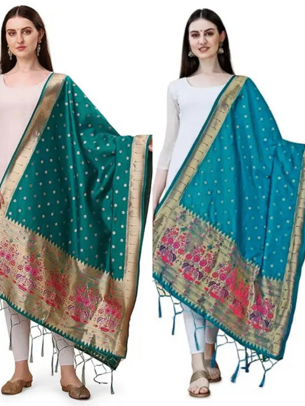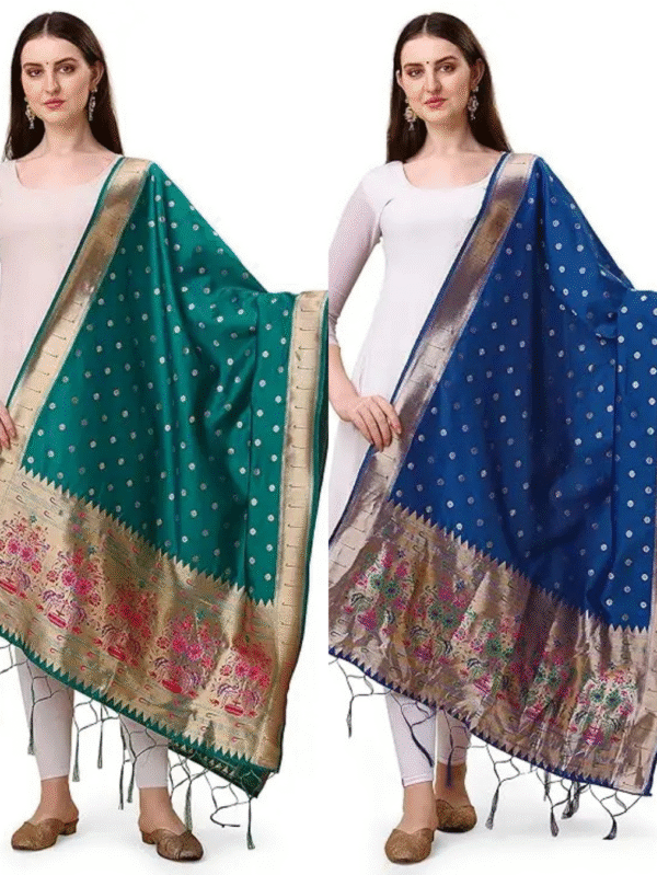 Fancy Rama and Firozi Banarasi Silk Dupatta Combo