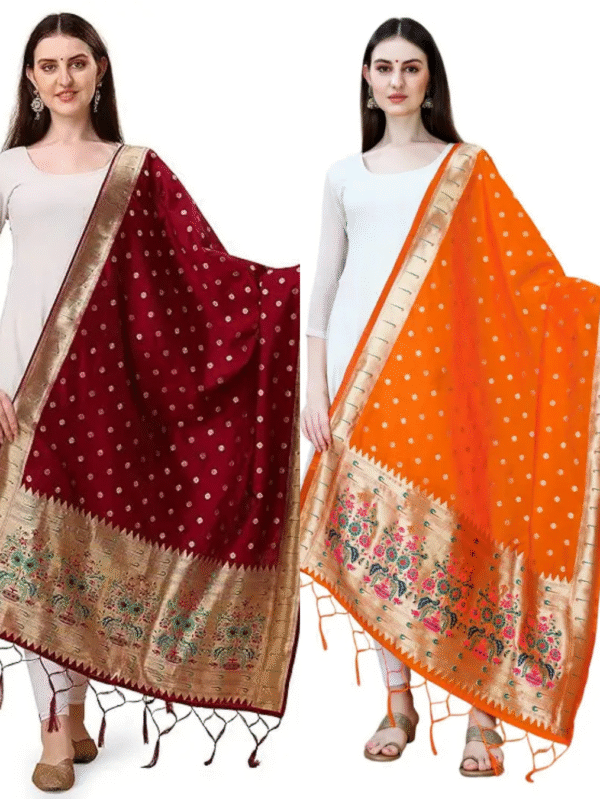 Fancy Maroon-Orange Banarasi Silk Dupatta Combo