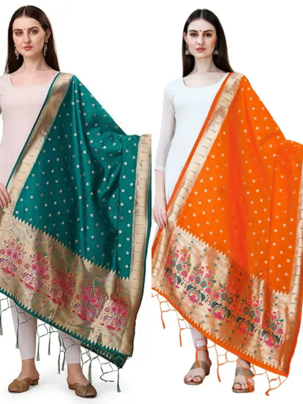 Fancy Rama-Orange Banarasi Silk Dupatta Combo