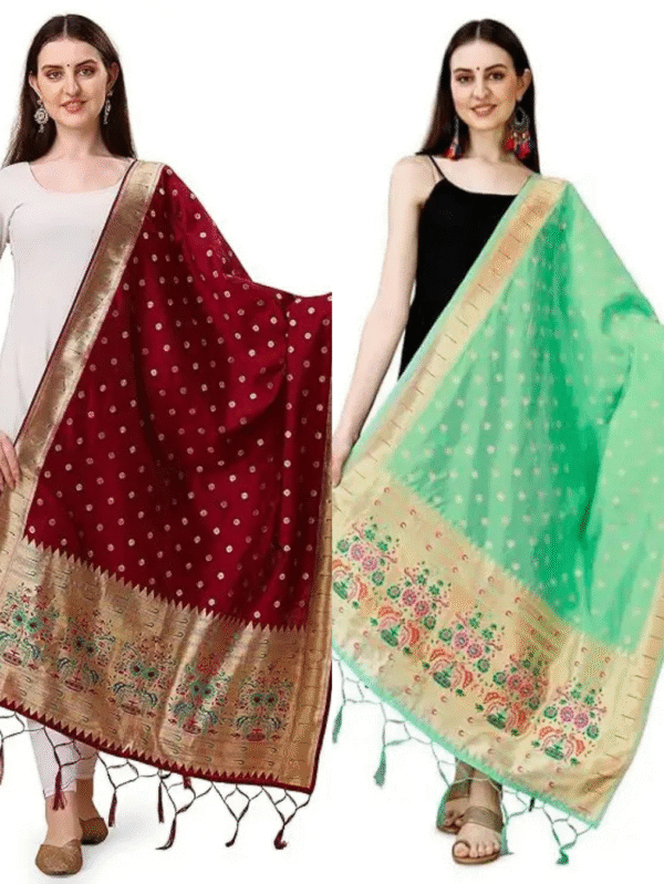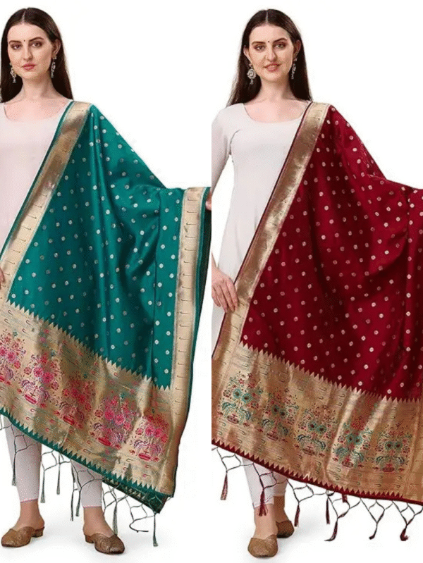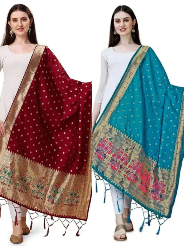 Fancy Maroon and Firozi Banarasi Silk Dupatta Combo