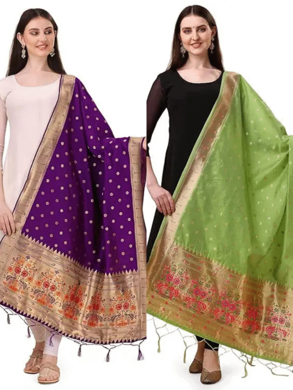 Fancy Purple-Pista Green Banarasi Silk Dupatta Combo