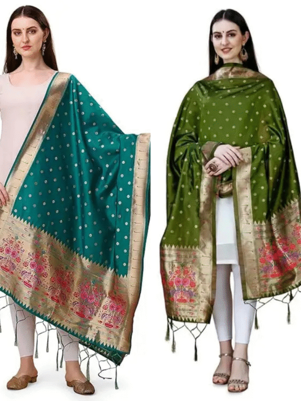 Fancy Rama-Mehendi Green Banarasi Silk Dupatta Combo