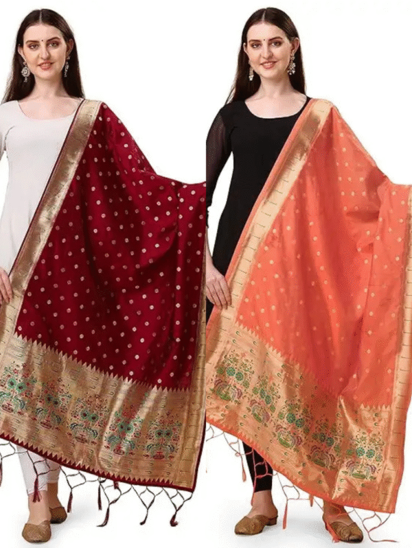 Fancy Maroon-Peach Banarasi Silk Dupatta Combo