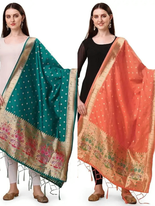 Fancy Rama-Peach Banarasi Silk Dupatta Combo