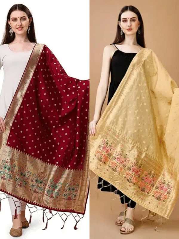 Fancy Maroon-Gold Banarasi Silk Dupatta Combo