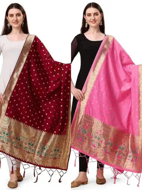 Fancy Maroon-Baby Pink Banarasi Silk Dupatta Combo