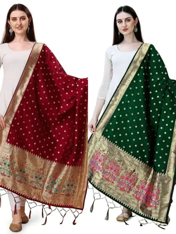Fancy Maroon-Dark Green Banarasi Silk Dupatta Combo